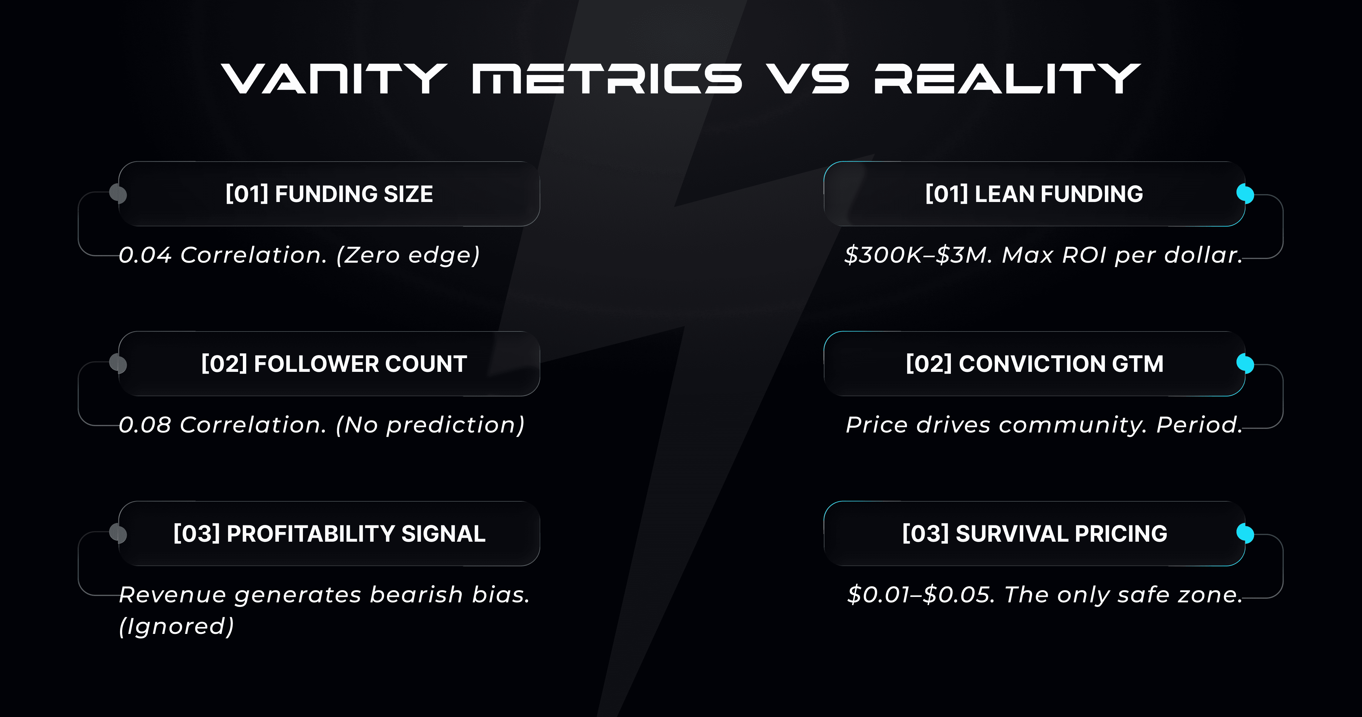 That’s why founders burn 60% of budgets on Discord bots, giveaways, and KOL shoutouts — chasing a metric that statistically does not matter.